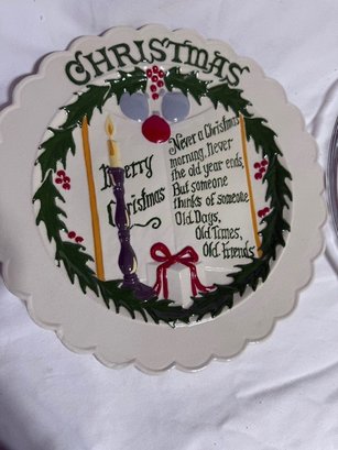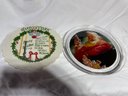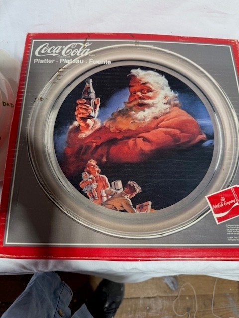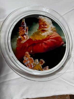A Coca Cola Sant Claus Tray 1993, And A Merry Christmas Hand Painted Plate