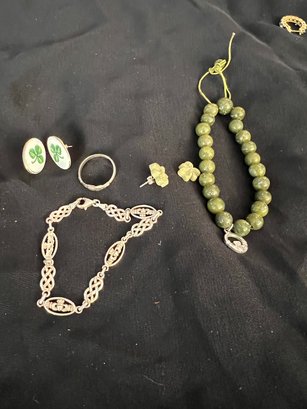 A Group Of Celtic Sterling Silver Jewelry Ring Bracelets, Earrings