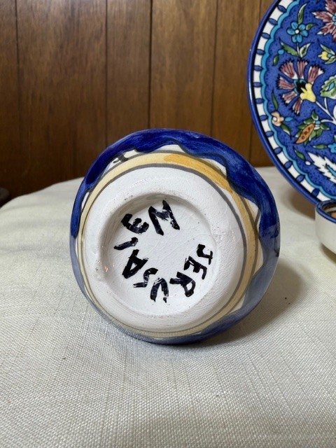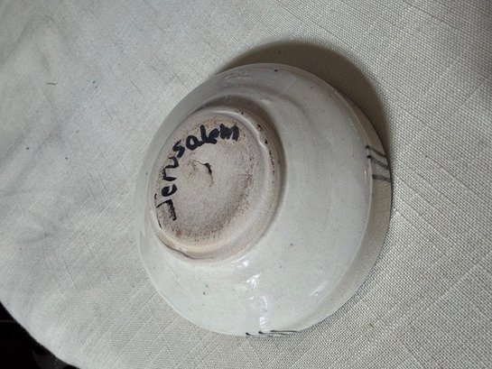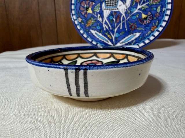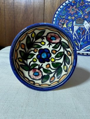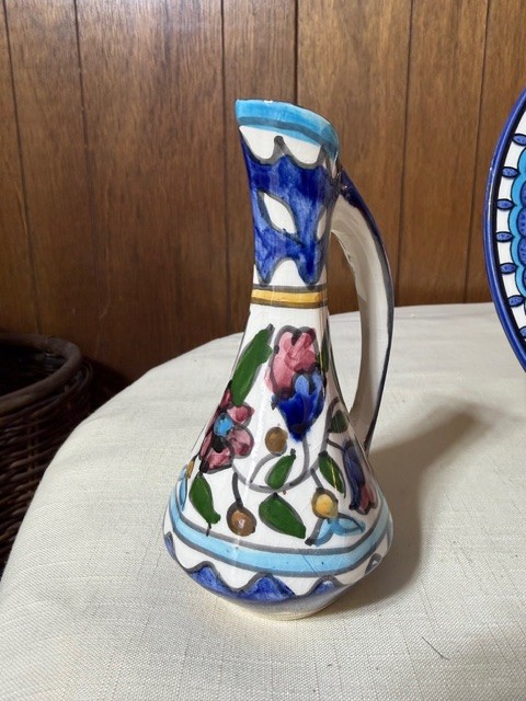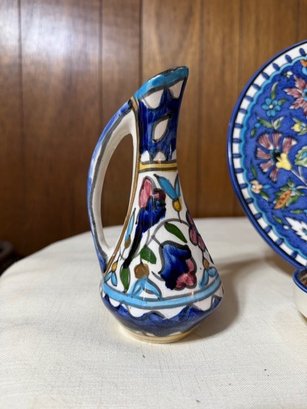 A Group Of Hand Painted Ceramics, Including A Pitcher, Bowl And Platter From Israel