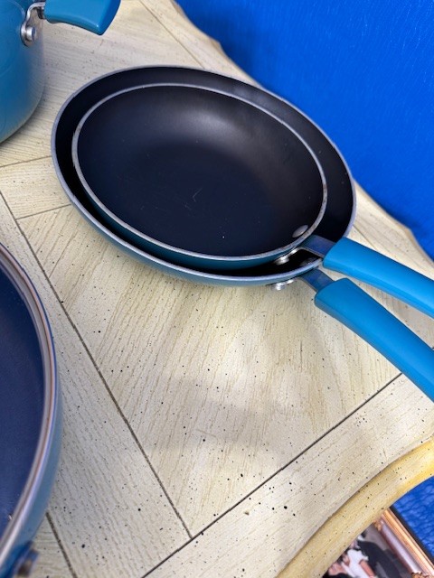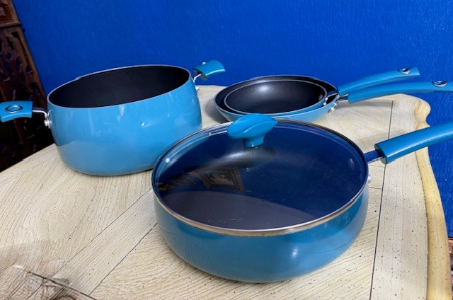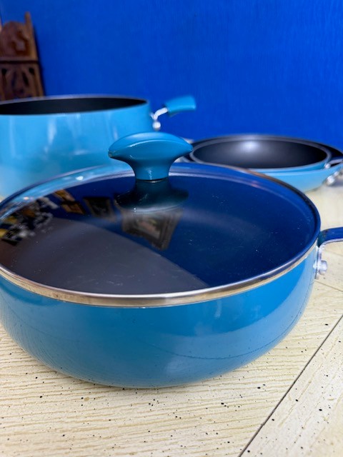 A Group Of Turquoise Like New Rachel Ray Non Stick Pots And Pans