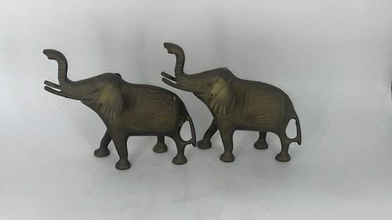A Pair Of Brass Elephants Embossed Approx 7" Each
