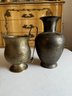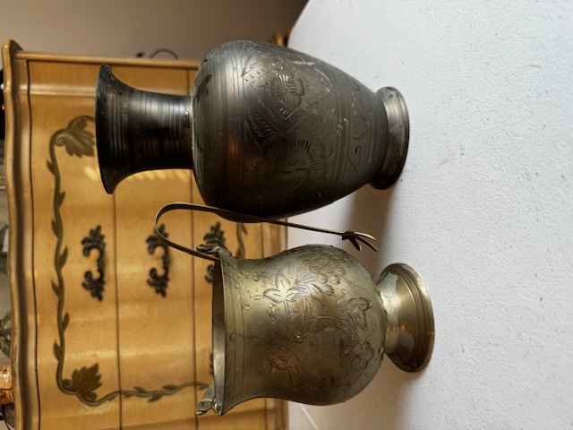 A Pair Of Brass Vase And Etched Ice Bucket With Tongs