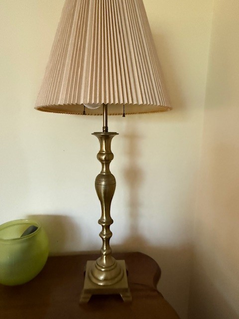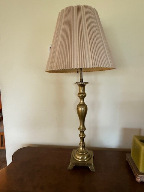 A Pair Of Candlestick Table Lamps Brass Approx 26" Tall