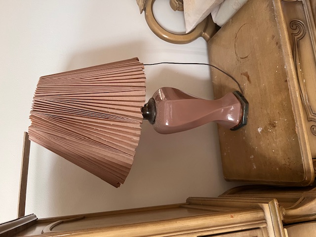 A Pair Of Mauve Colored Ceramic Table Lamps
