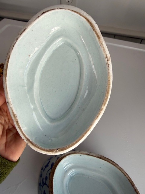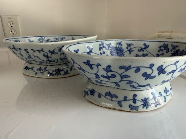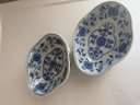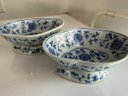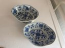 A Pair Of Oval Blue And White Bowls Approx 8" Long
