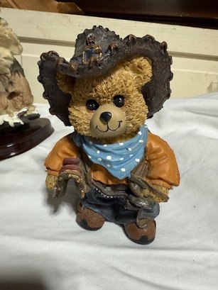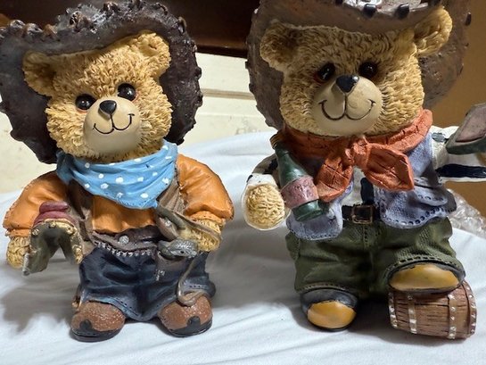 A Pair Of Resin Sculpted Cherished Teddies Cowboys! Approx 6" Tall