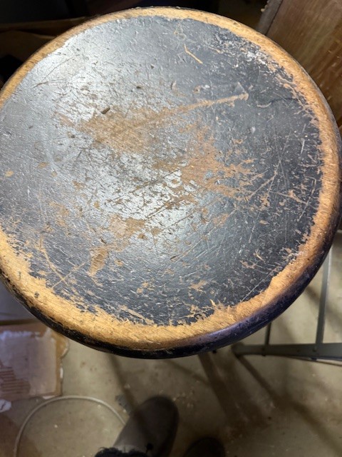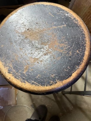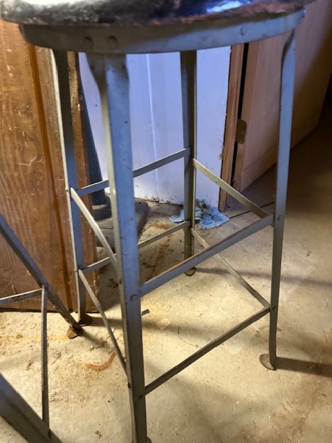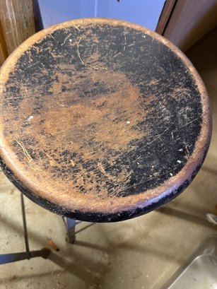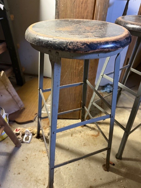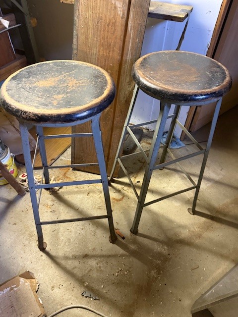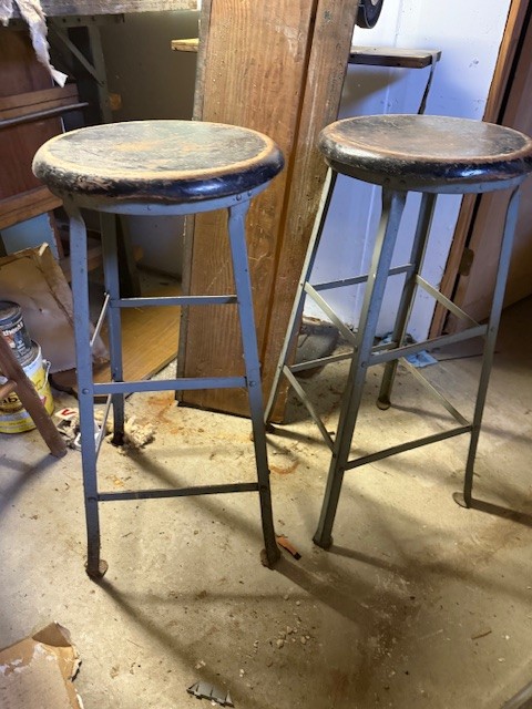 A Pair Of Vintage Metal Stools With Wooden Seats