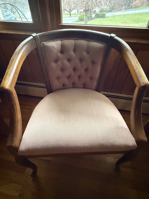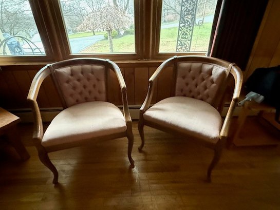 A Pair Of Walnut Regency Tufted Open Arm Chairs Needs A Little Love