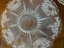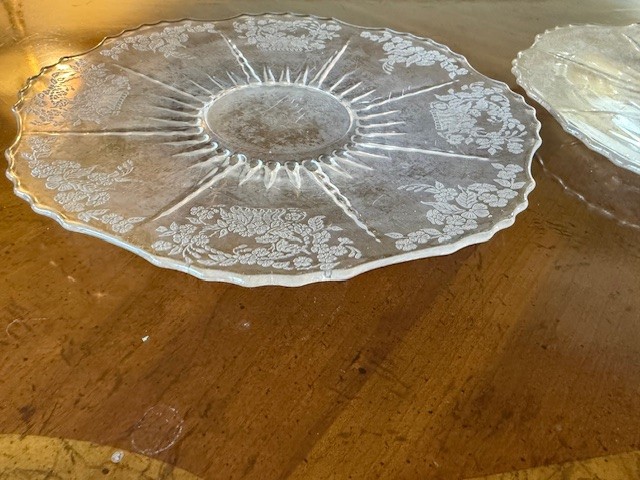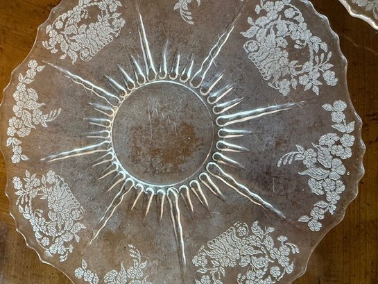 Pair Of Etched Glass Cake Plates