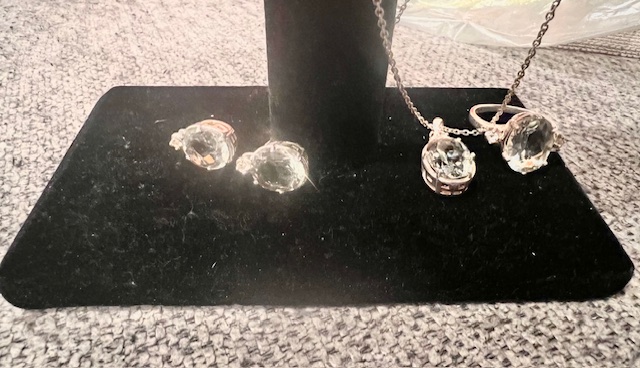 An Ensemble Of Necklace, Earrings And Ring Sterling Silver With Tourmaline/peridot?