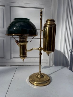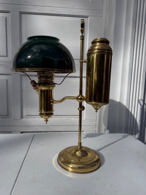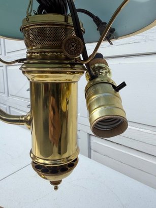 Antique Student Lamp Brass And Deep Green Shade