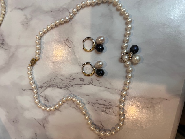 Black And White Pearl Ensemble, Earrings, Necklace By Avon