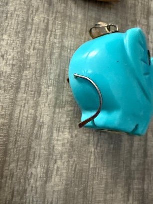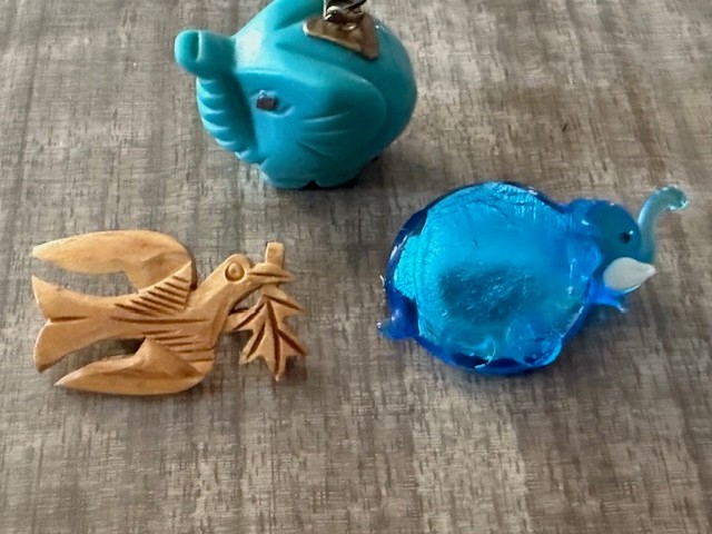 Carved Elephant Pendent, Elephant Glass Pin And Wood Carved Dove Pin