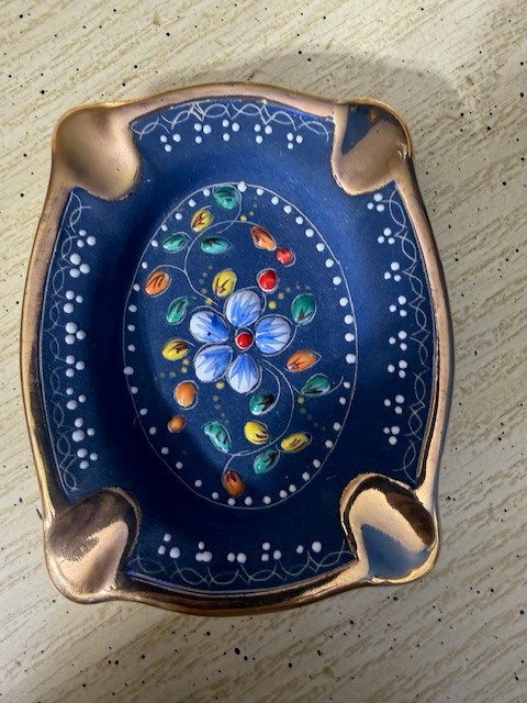 Ceramic Ashtray Gold Edged Approx 4" S.A. Leart Co Made In Portugal