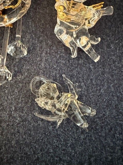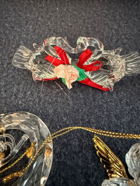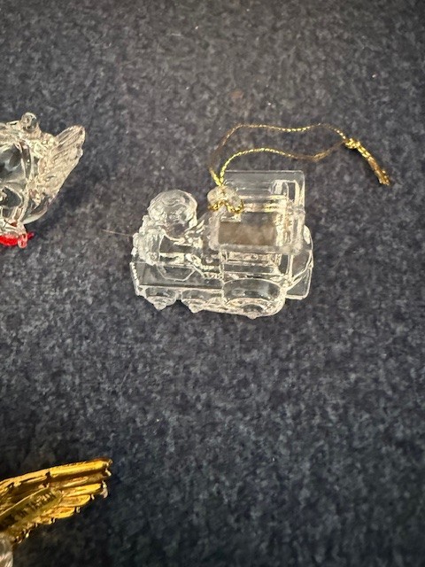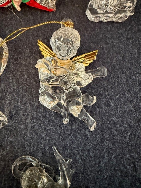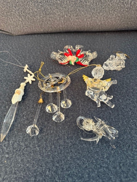 Collection Of Glass And Lucite Ornaments, Bells, Angels, Icicles, Train Etc