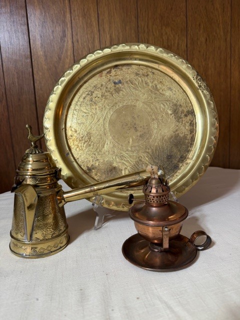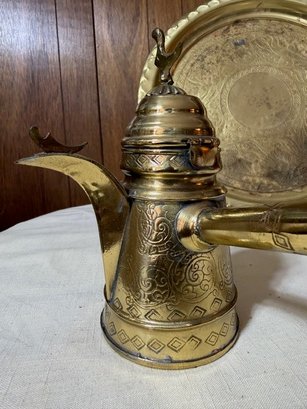 Collection Of Tea/coffee Pots And Tray Brass And Copper
