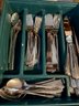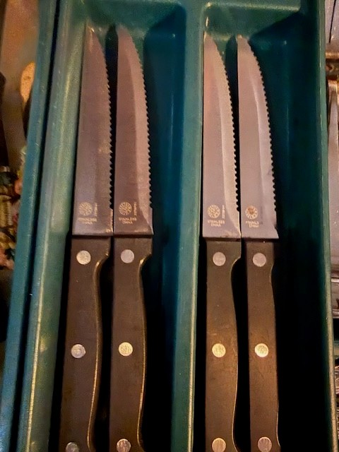 Drawer Of Silver Ware Include 4 Steak Knives With Wooden Handles