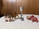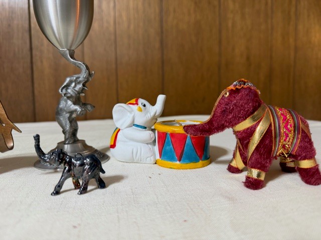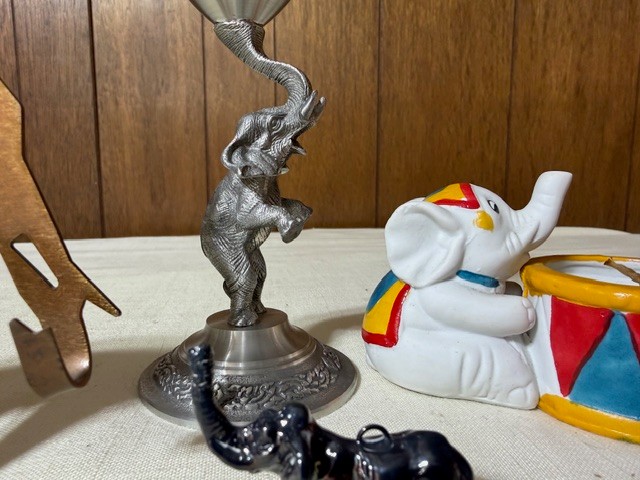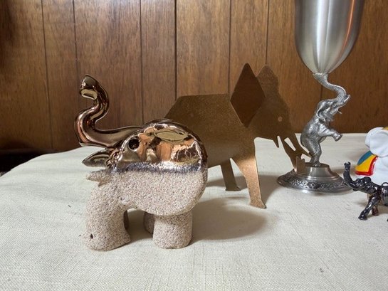 Eclectic Group Of Elephants! All Shapes And Sizes Including Pewter Wine Glass
