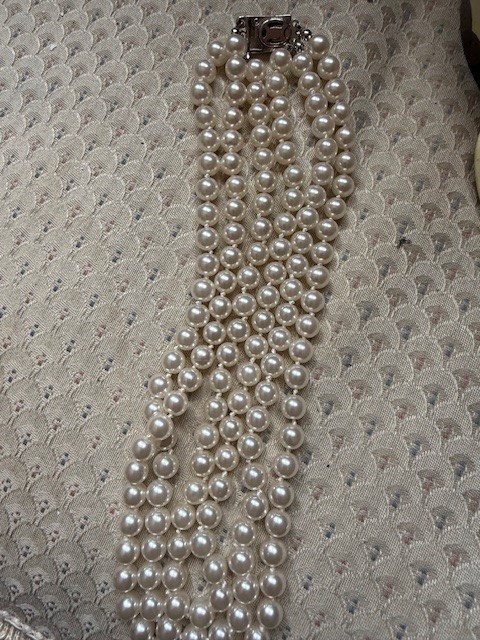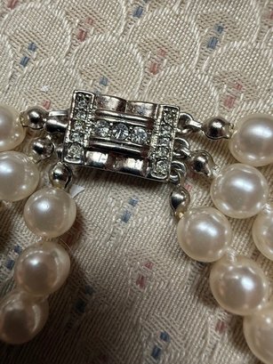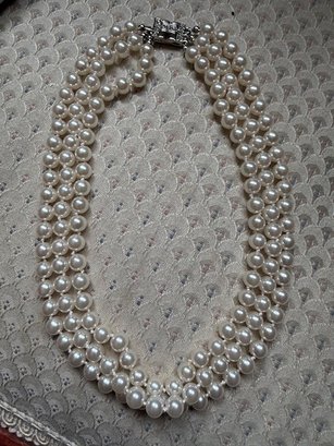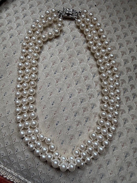 Elegant Three Strand Faux Pearl Necklace, Clean,