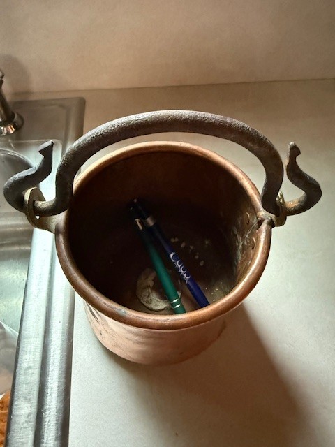 Exquisite Copper WROUGHT IRON HANDLED Handled Pot/vase