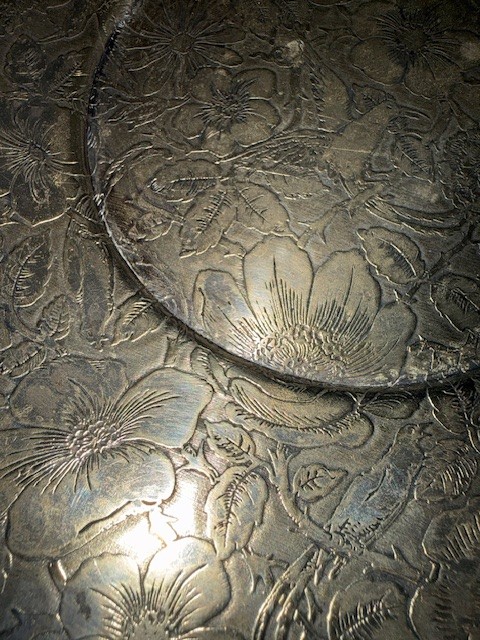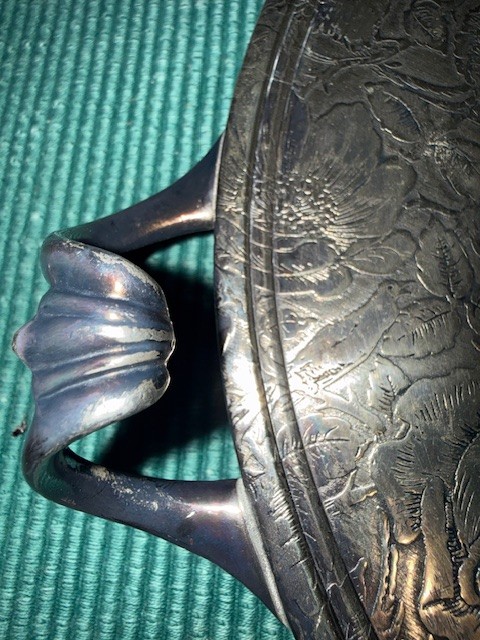 Exquisite Round Tapestry Etched Handled Tray W B Co. Approx 12"