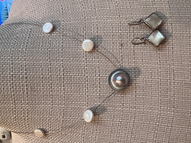 EXQUISITE SET OF STERLING SILVER SETTING ON NECKLACE AND EARRINGS