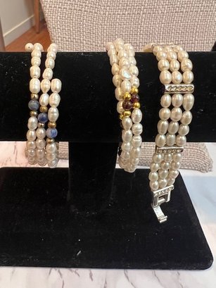 Faux Pearl Bracelet And 2 Fresh Water Pearl Wrap Bracelets