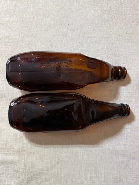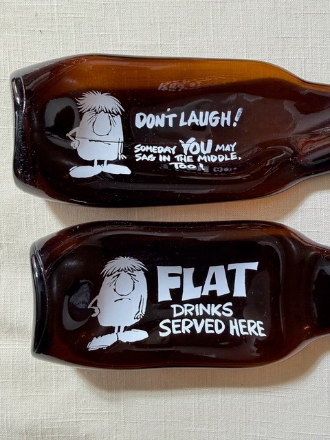 Flattened beer bottles, ashtrays