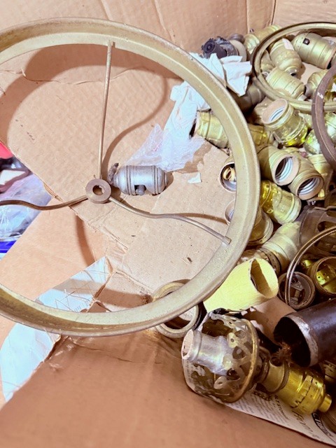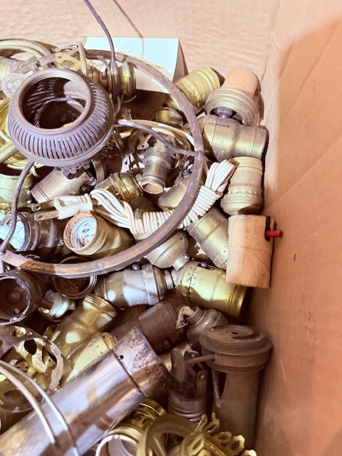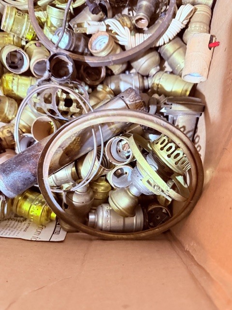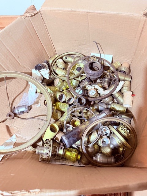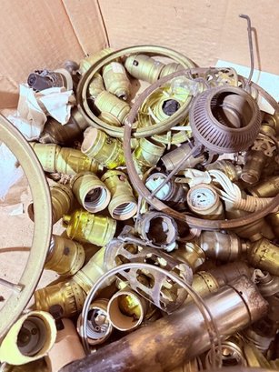 Large Box Of Brass Findings For Hurricane And Table Lamps