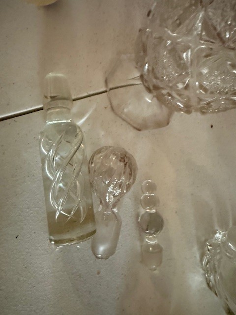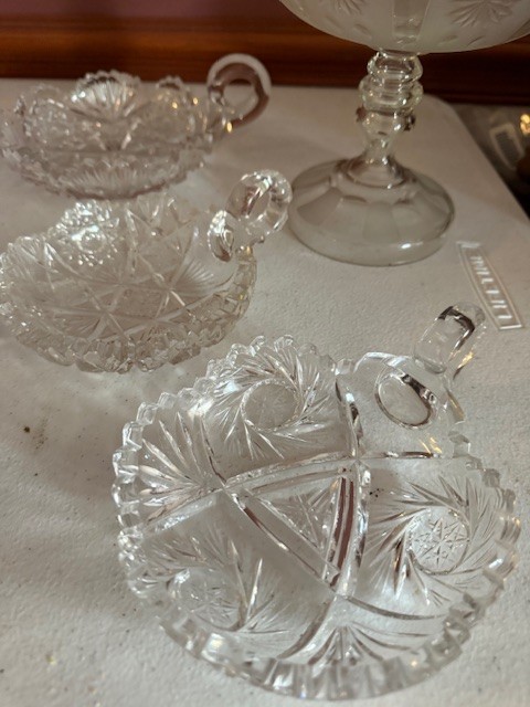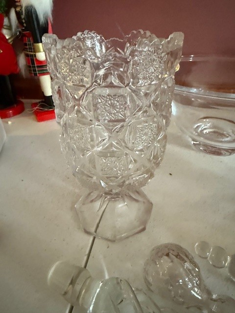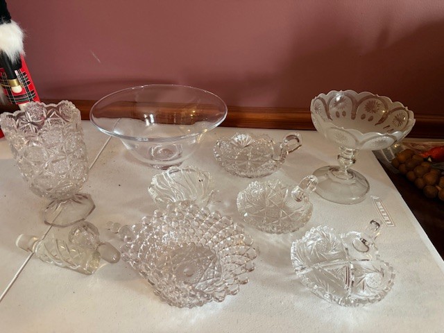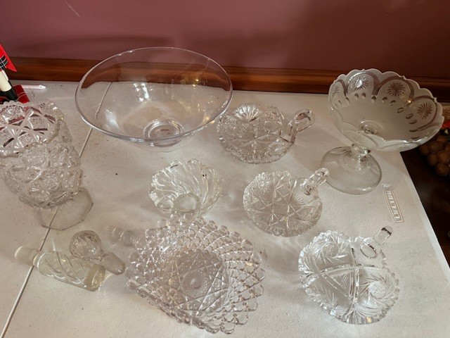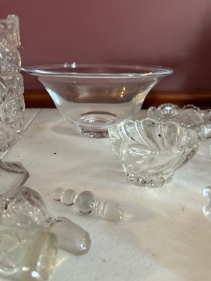 Large Group Of Crystal, Vases, Appetizer Plates, Bowls, Creamer And Sugar, Stoppers Etc