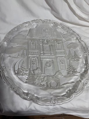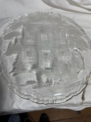 Glass Embossed Winter Wonderland Cake/cheese Plate
