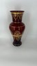 Gilded Bohemian Cranberry Glass Vase Approx 10"
