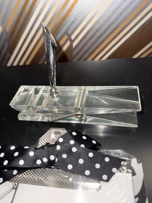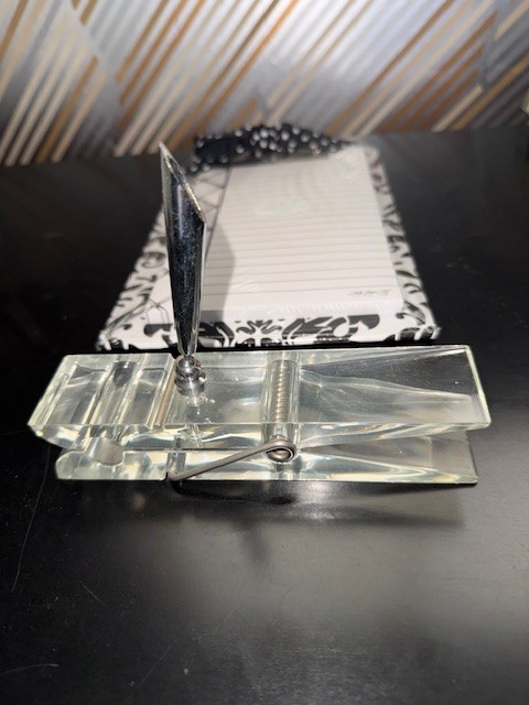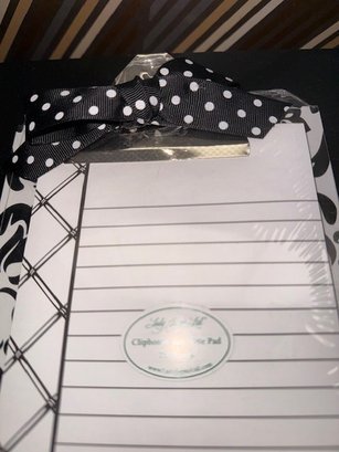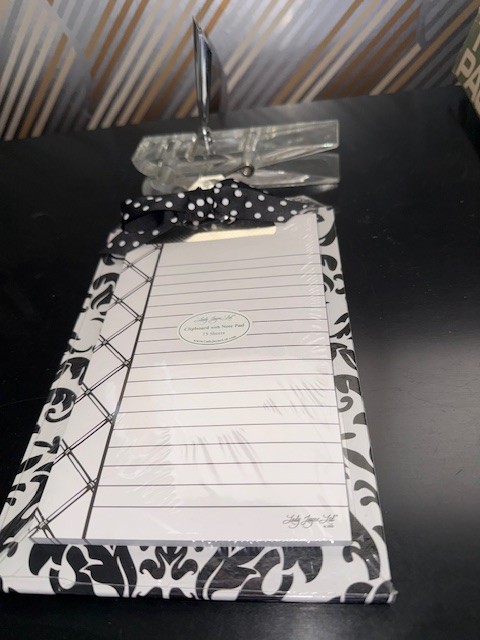 Lucite Paper Clip Organizer And Pad On Paisley B/w Clip Board New
