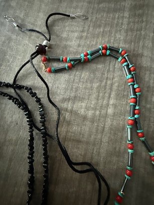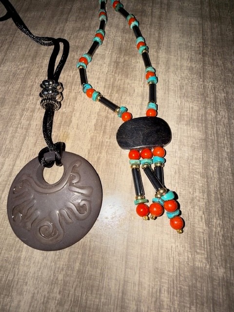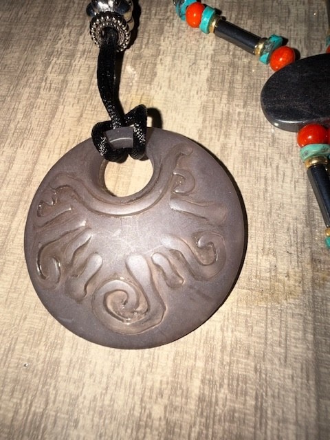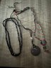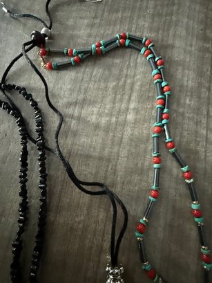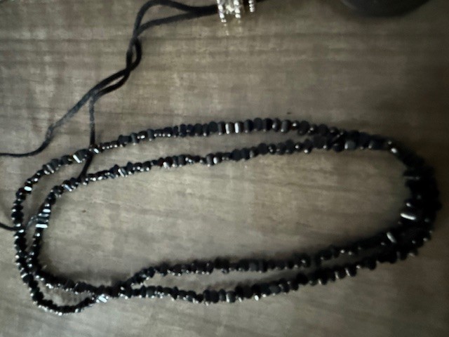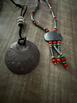 Medallion Necklaces, Beaded, Polished Black Stone 24"