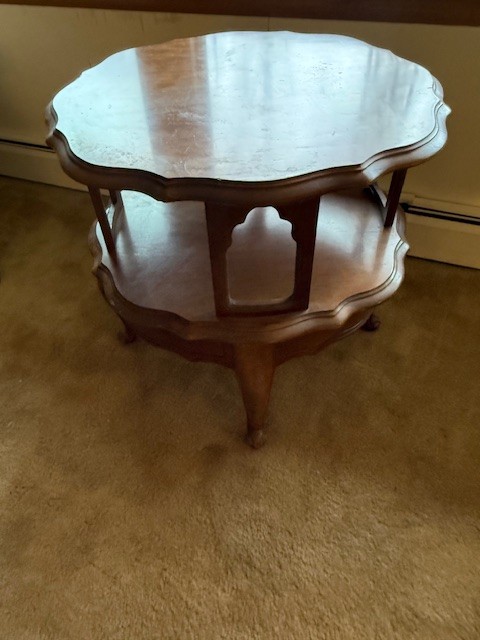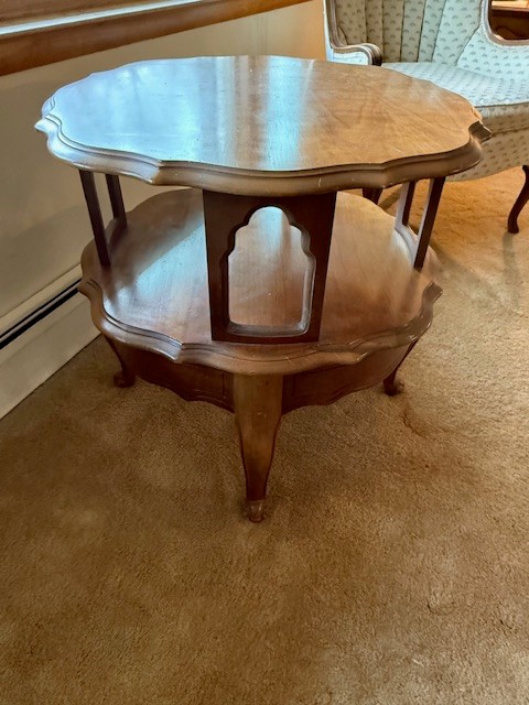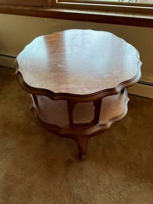 Mid Century Round Walnut Two Tier Table