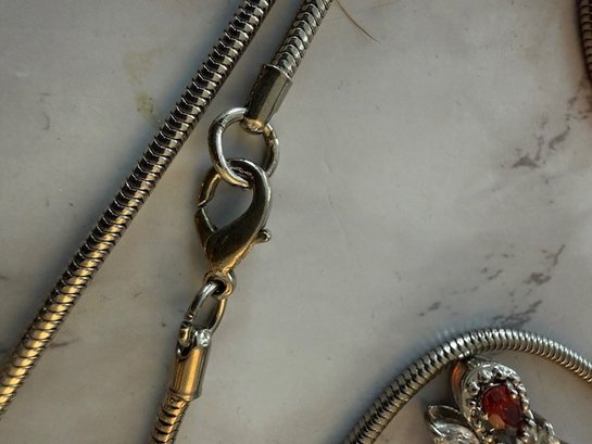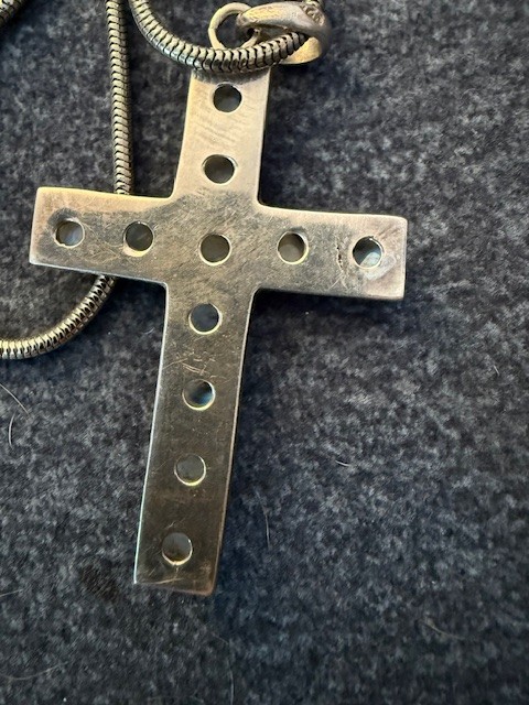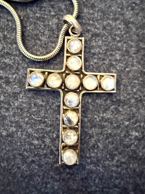 Moonstone And Silver Cross Approx 3" On 20" Snake Chain