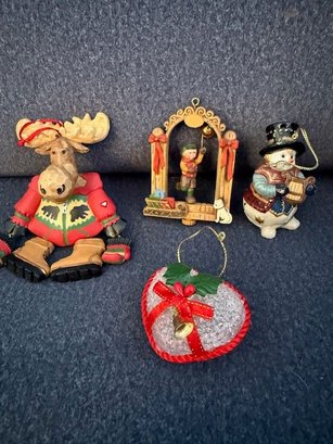 Ornaments, Moose! Toy Soldier, Heart And Snowman- Porcelain
