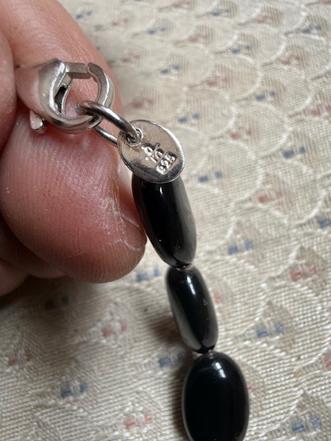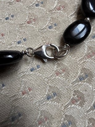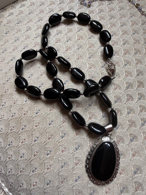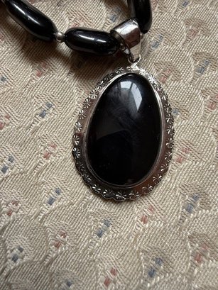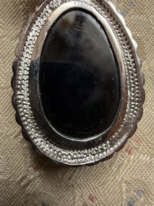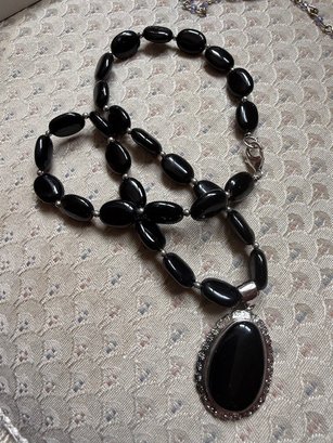 Oval Onyx And Sterling Silver Pendent Necklace, Approx 18" Danbury Mint