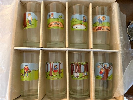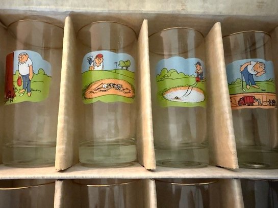 RARE~ Set Of 8 Comic Golfer Hi-balls, West Virginia Glass Co