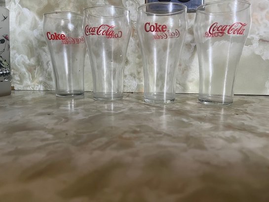 Retro "coke" Coca Cola Drinking Glasses Set Of 4