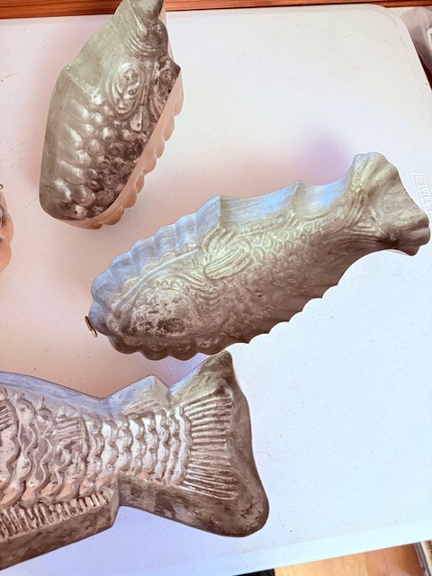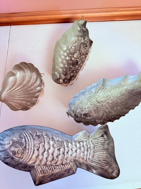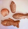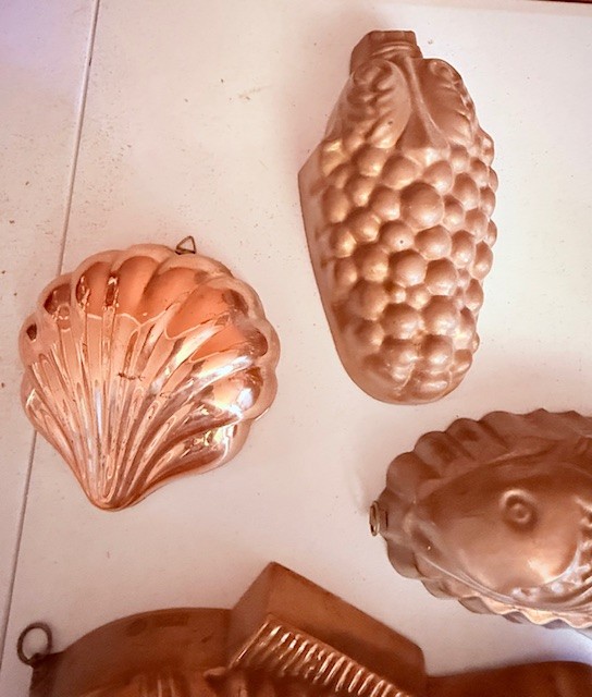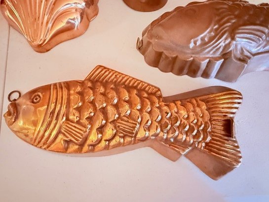 Group Of 4 Copper Molds ~ Fish, Shell, Grapes