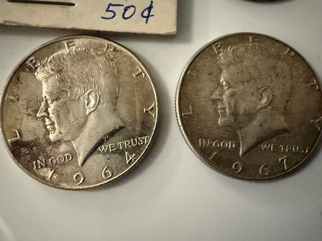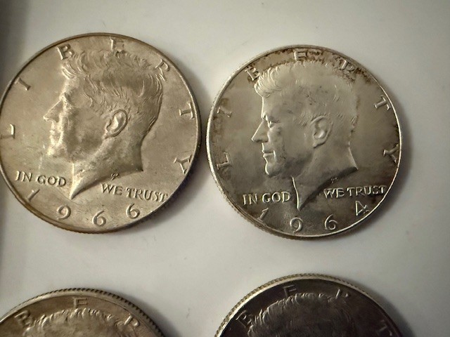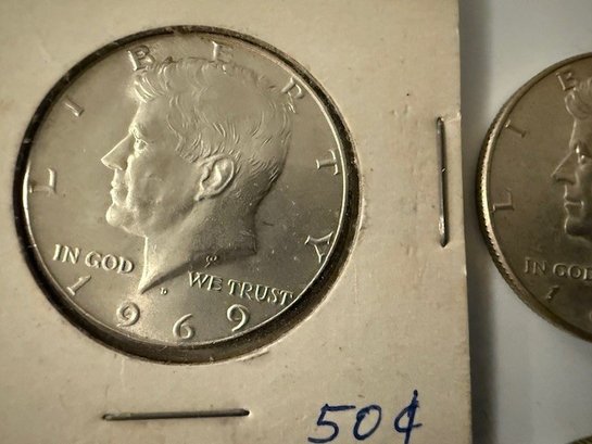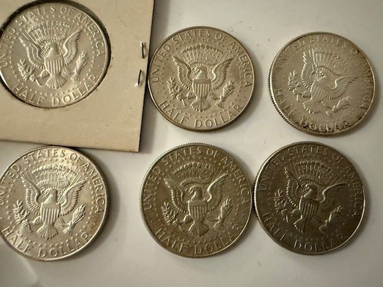 Group Of 6 Kennedy Half Dollars One Denver 1964- 1969 (#6)