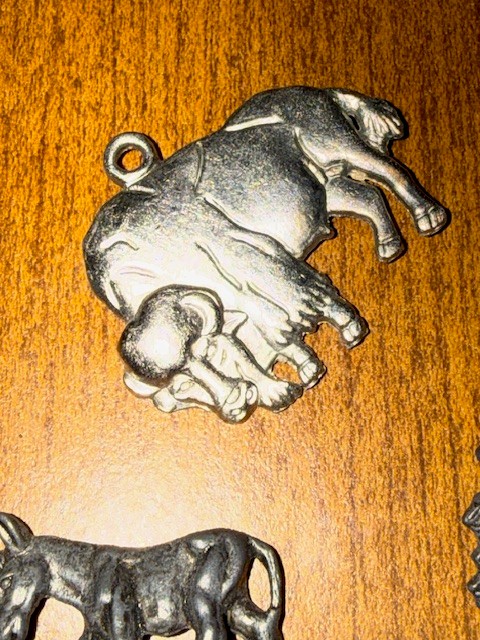 Group Of Four Charms, Donkey, Bull, And Two Religious Icons