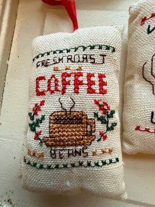 Group Of Three Holiday Ornaments Hand Stitched