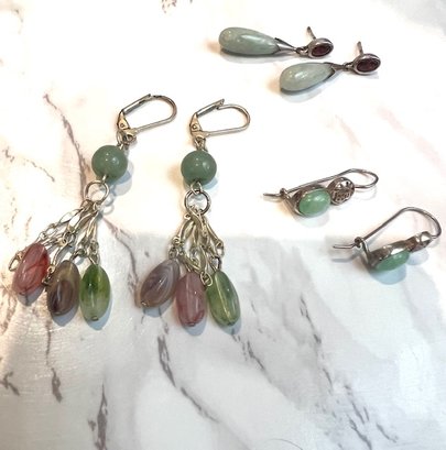 Group Of Three Multi Semi Precious Stone And Sterling Silver Earrings