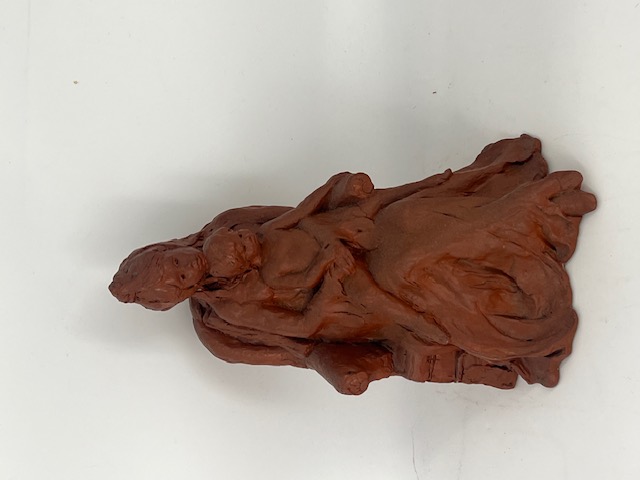 Seated Mother And Child Sculpture In Terracotta Clay By Nancy Dupont