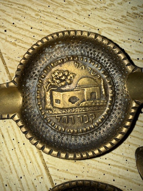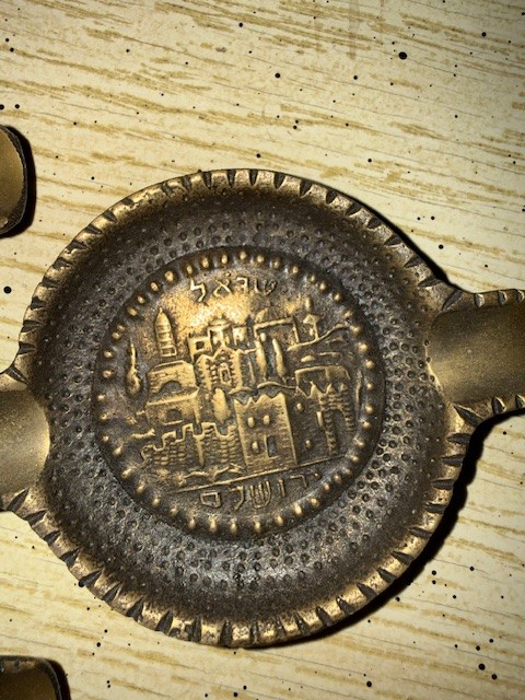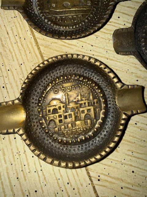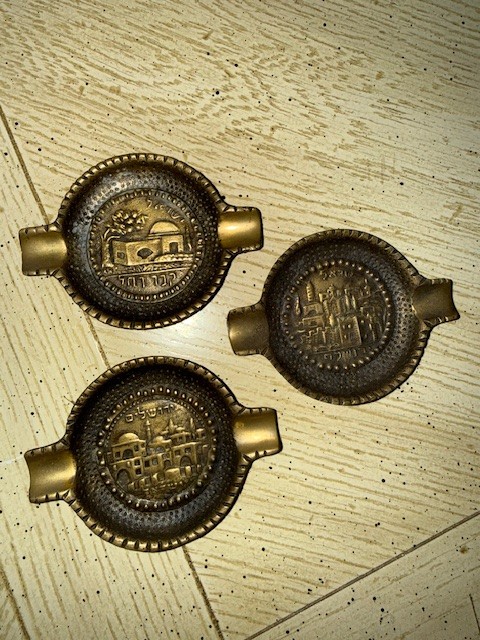 Set Of Brass Ashtrays In Holder From Israel Approx 3.5"
