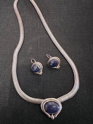 Set Of Sterling Silver And Lapis Lazuli Necklace And Earrings