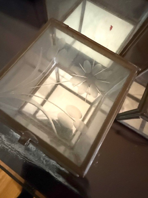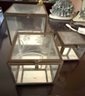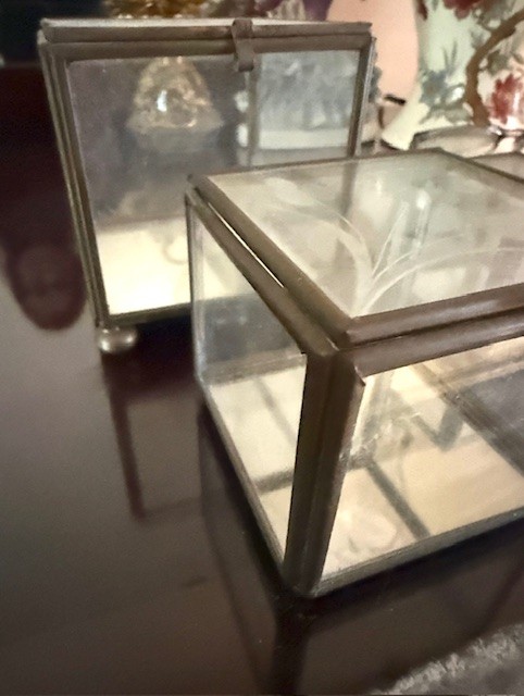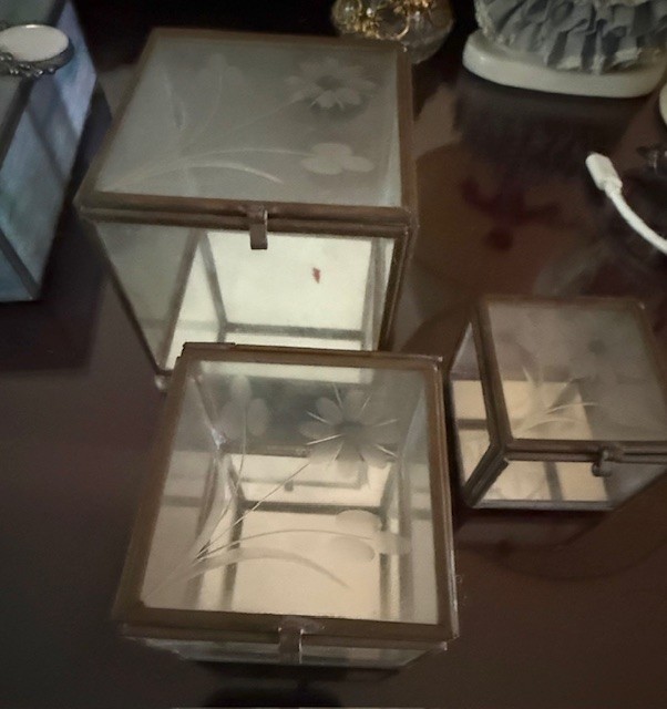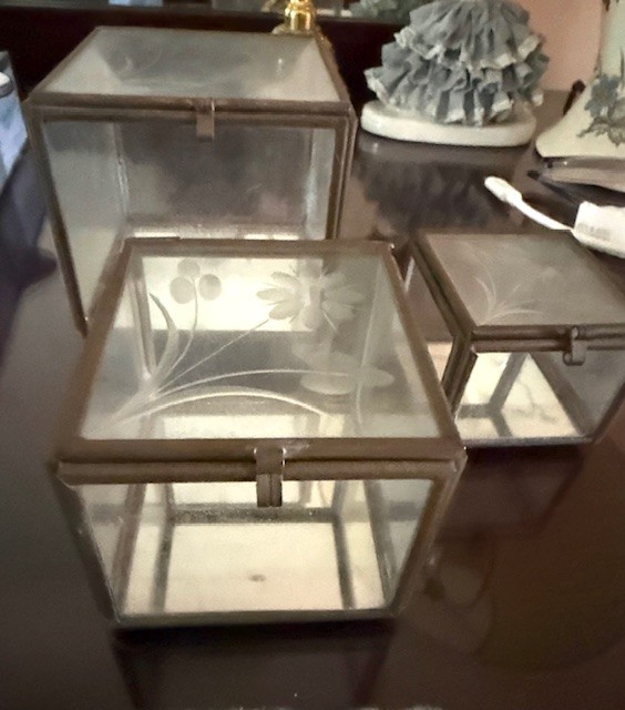 Set Of Three Glass Etched And Brass Trinket Boxes, 3 Sizes