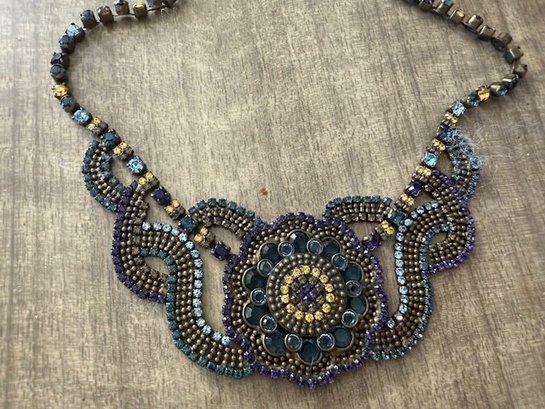Sorrelli Plate Necklace Rhinestones And Beads , Medallion Center
